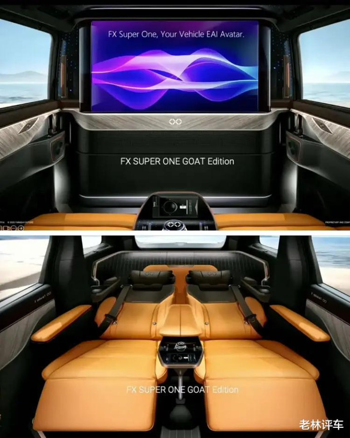 第三,北美消费者对内饰设计的固有认知就是仪表盘+中控屏幕,哪怕特斯拉,车内屏幕也不多,而FX Super One就不同了,不但配备了12.3英寸液晶仪表盘和15.6英寸中控屏幕,而且配备了15.6英寸副驾娱乐屏幕和26英寸HUD投屏,所带来的颠覆感和震惊值并非一星半点。